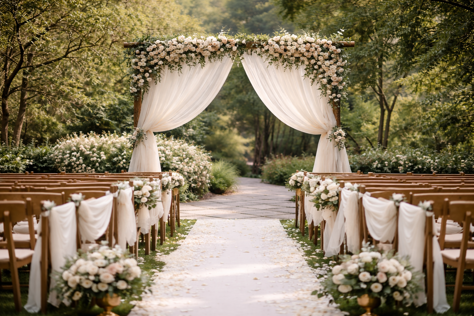 These details gently guide guests’ eyes toward the altar and enhance the overall ceremony experience.